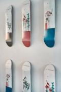 Fragile Flower illustrations combined with a second layer of vibrant color, screen printed on to the skateboards. The collaboration also contains a special edition T-shirt with a monochromatic flower-artwork screen printed on 100% organic cotton.