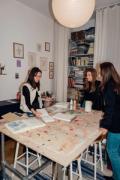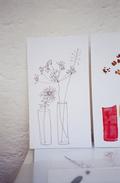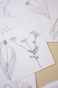 As an illustrator, I am inspired by the plants growing in my studio and all around me. Working with all kinds of techniques, my artworks and illustrations can be transferred onto many different settings and mediums: From magazines to packaging, from walls to, of course, textile. One of my basic techniques is to combine fragile black lines with aquarelle color and always a hint of natural incidents.
